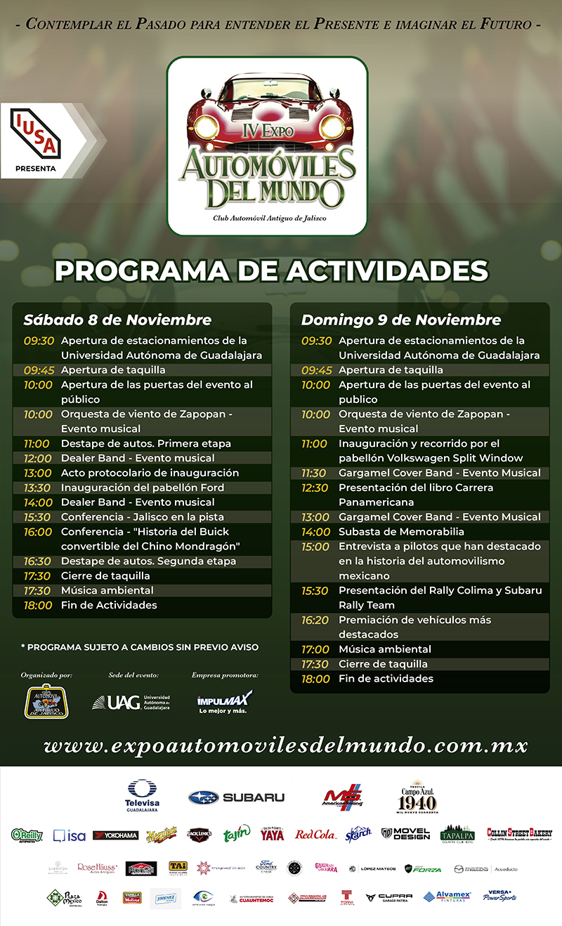 Expo Automóviles del Mundo presenta más de 500 vehículos motorizados de diversas marcas y modelos, que por más de un siglo han circulado en nuestras calles y carreteras; esta extraordinaria exhibición, la más grande del occidente y norte de nuestro país, es el punto de encuentro de cientos de coleccionistas, quienes con pasión y dedicación, salvaguardan el invento más relevante de la historia.